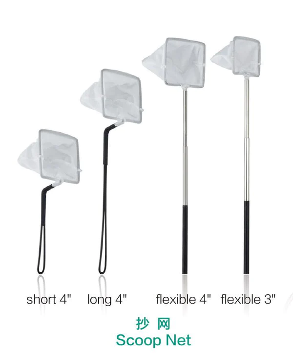A close-meshed scoop net from Chihiros, which makes catching fish, plant cuttings and foreign bodies from the aquarium easy with its telescopic handle and soft, tight-meshed fabric.